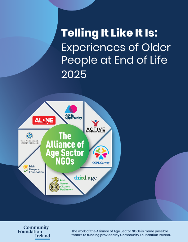The Alliance membership includes Active Retirement Ireland, Age & Opportunity, ALONE, The Alzheimer Society of Ireland, Irish Hospice Foundation, The Irish Senior Citizens Parliament and Third Age.